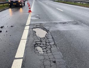 De afgelopen tijd zijn we met onze calamiteiten service veel bezig met het dichten van gaten in asfalt, zodat iedereen veilig de snelweg op kan. Veel van ons werk zie je pas als het er niet meer is – een gevuld gat in de snelweg, een gesloopt gebouw of een soepel lopende verkeerssituatie. 𝐌𝐚𝐚𝐫 𝐚𝐜𝐡𝐭𝐞𝐫 𝐝𝐞 𝐬𝐜𝐡𝐞𝐫𝐦𝐞𝐧 𝐳𝐢𝐣𝐧 𝐰𝐢𝐣 𝐚𝐥𝐭𝐢𝐣𝐝 𝐛𝐞𝐳𝐢𝐠 𝐨𝐦 𝐚𝐥𝐥𝐞𝐬 𝐝𝐫𝐚𝐚𝐢𝐞𝐧𝐝𝐞 𝐭𝐞 𝐡𝐨𝐮𝐝𝐞𝐧!